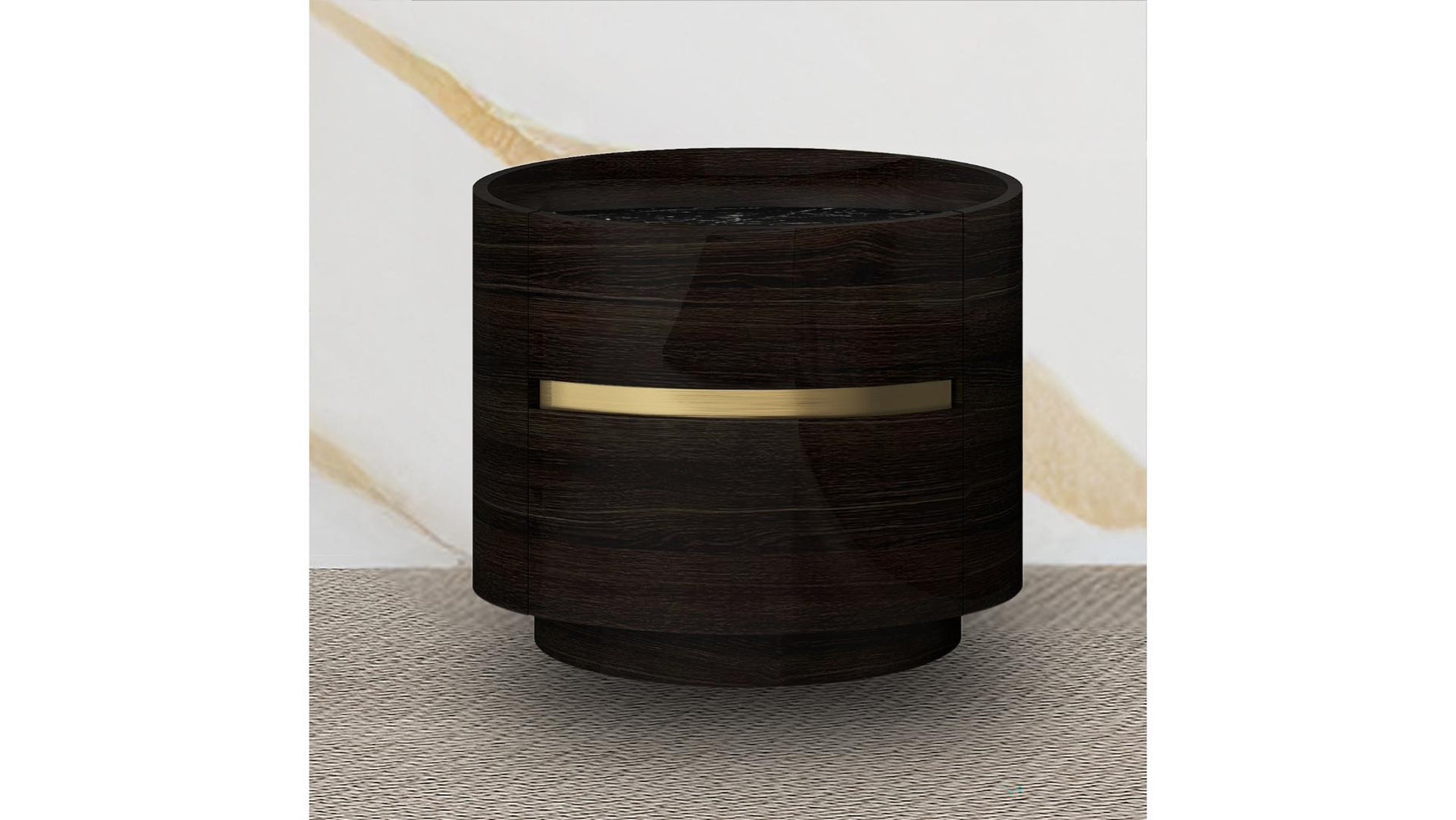 Dark Oak Lacquer Finish with Titanium Gold Accents – A striking combination that exudes modern sophistication.